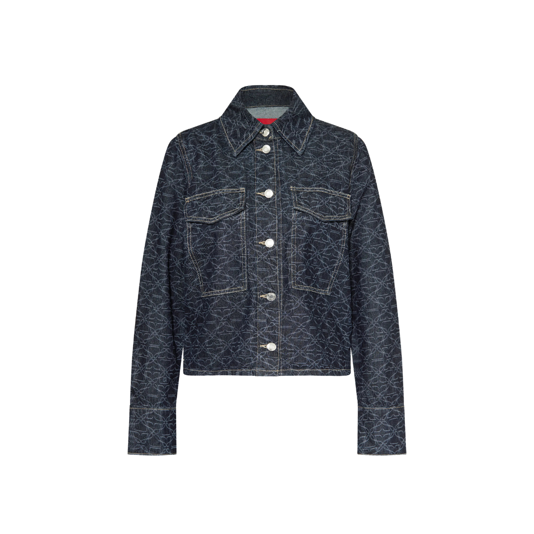 Solid Denim Jacket With Monogram Laser Print