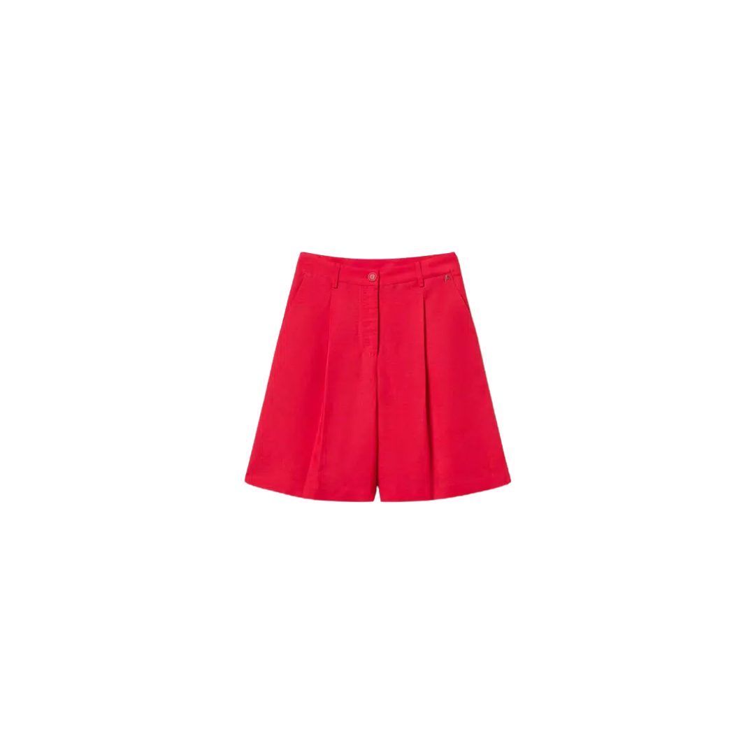 Actitude collection linen and viscose Bermuda shorts. Front pleats, slant pockets, zip and button fastening, double welt pockets at the back, loose fit.