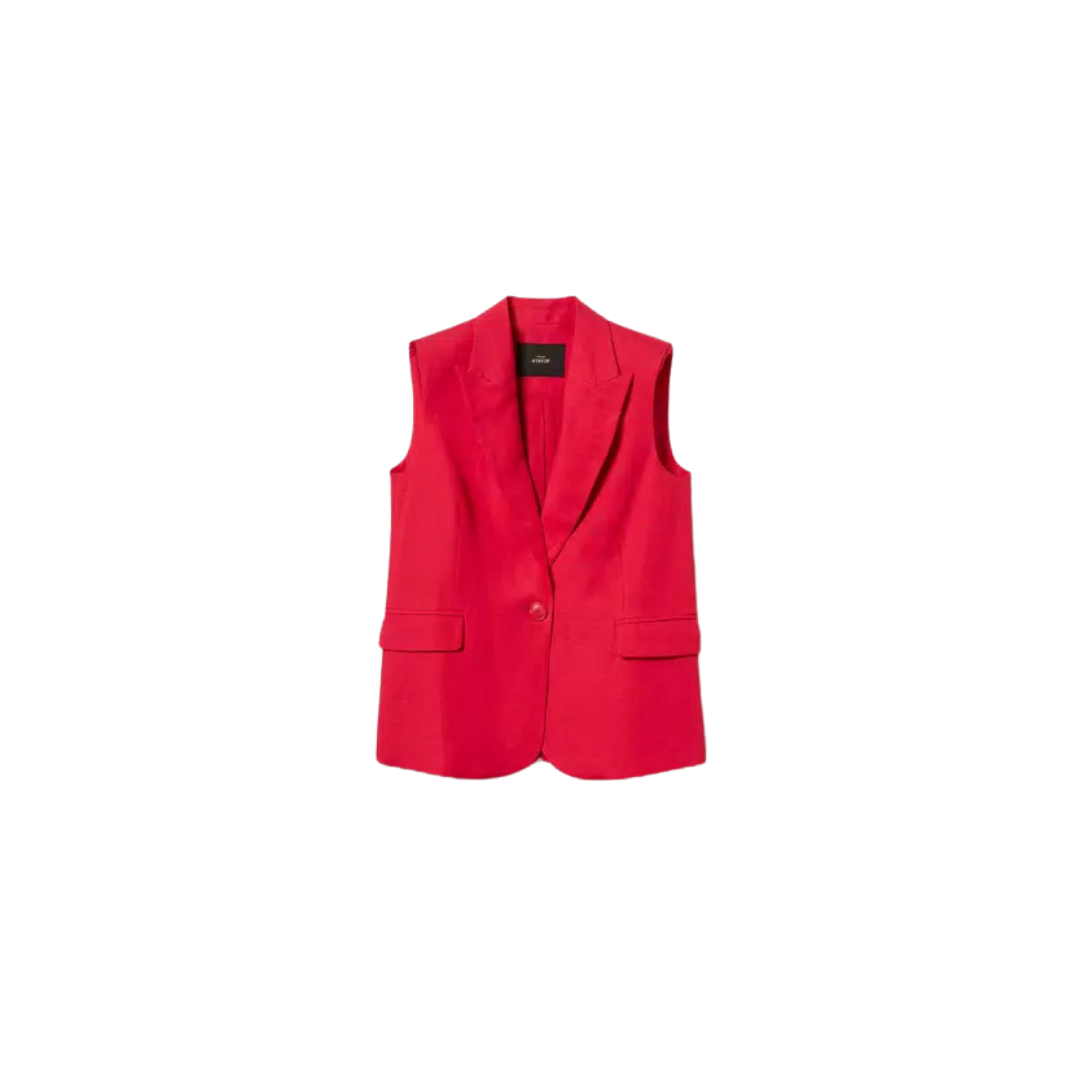 Actitude collection linen and viscose blend waistcoat. With lapels, single-breasted fastening with tonal button, shaped shoulders, front flap pockets, straight fit.