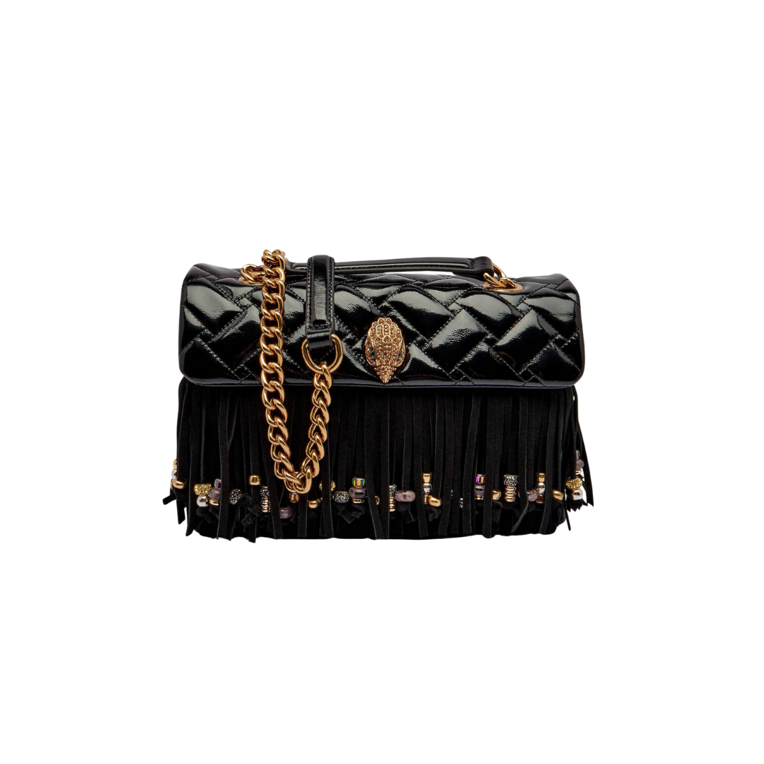 A medium-sized handbag from the Kurt Geiger London collection. This zippered model is made from a combination of suede and genuine leather.
