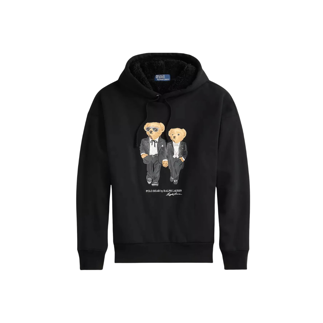 This cotton-blend hoodie, which features a high-pile fleece interior, is printed at the front with two bears in black-tie attire. Reflecting the elegance and excitement of a special occasion, the graphic is inspired by an iconic photograph of Mr and Mrs Lauren attending an awards show in the late '70s.